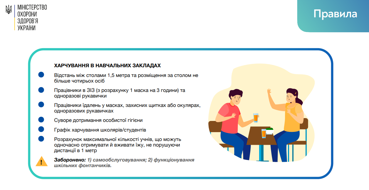Харчування сплачується окремо, 120 грн на день (гарячі обіди), але їхню вартість може бути змінено протягом року.