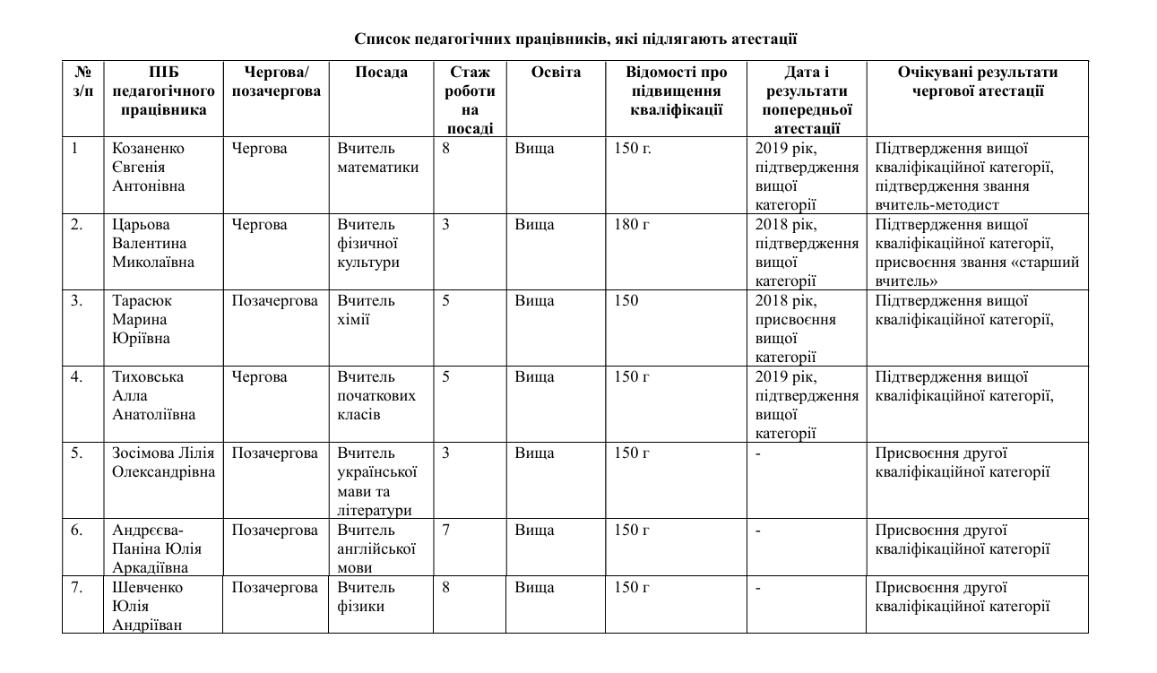 Для вступу до 2, 3 або 4 класу, а також до 5, 6, 7, 8, 9 класів подається той самий перелік, що й для першого класу, а також Особова справа дитини із характеристикою з попереднього місця навчання. Для 10 та 11 класів до всього перерахованого додається свідоцтво про базову загальну середню освіту та додаток до нього (копія).
