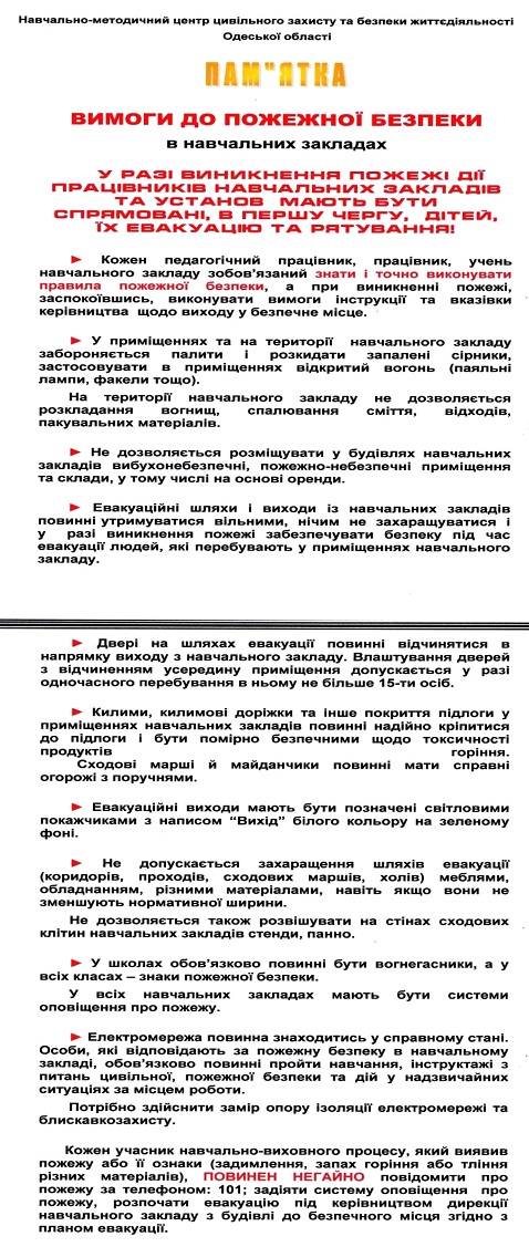 Навчально-методичний центр цивільного захисту та безпеки життєдіяльності Одеської області 65007, м.Одеса, вул. В. Арнаутська, 95, тел. (048) 722-90-91, 725-02-10