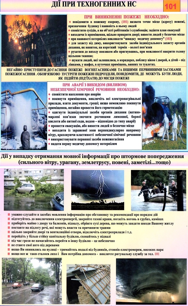 - алгоритми дій в надзвичайних ситуаціях різного походження.