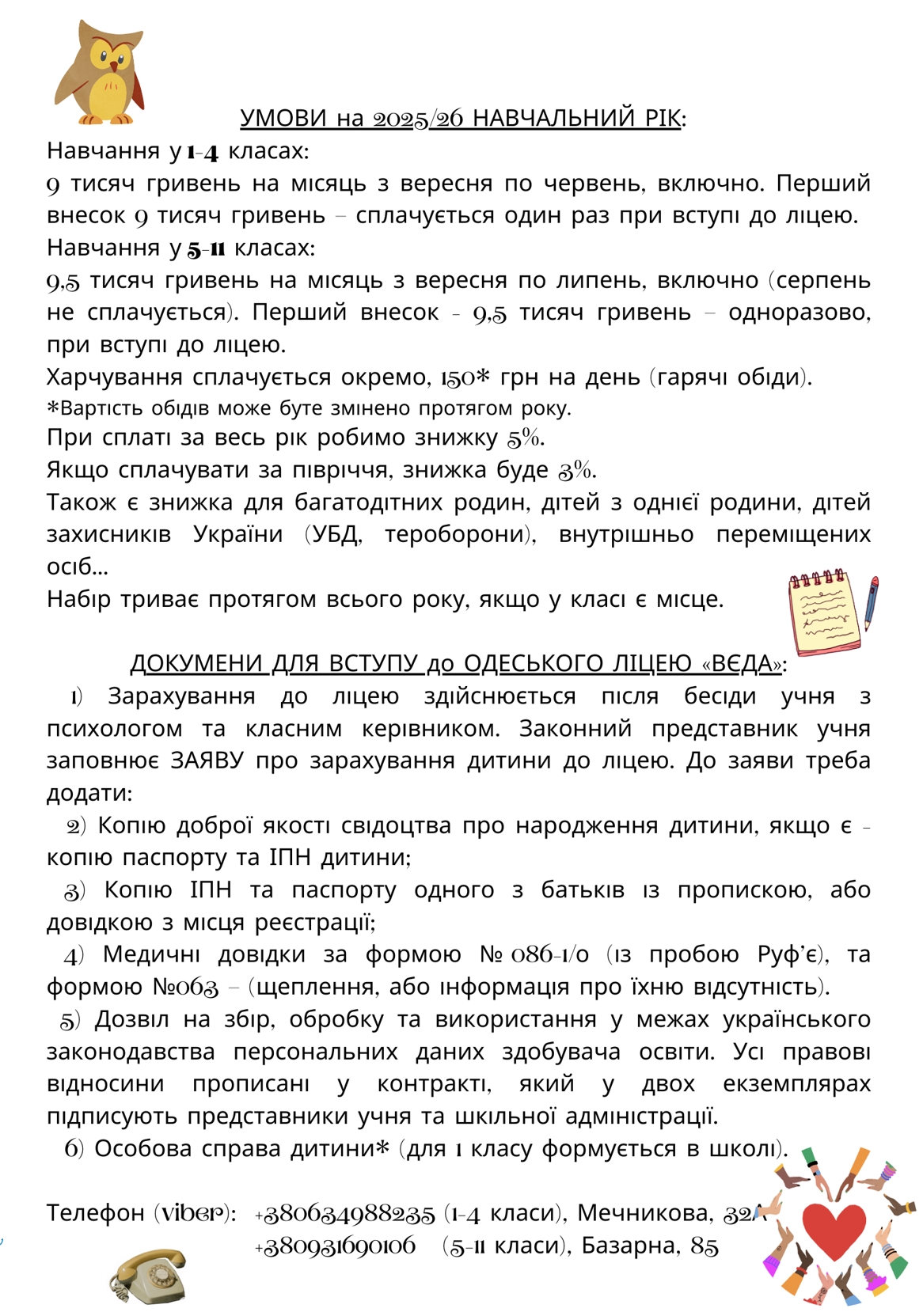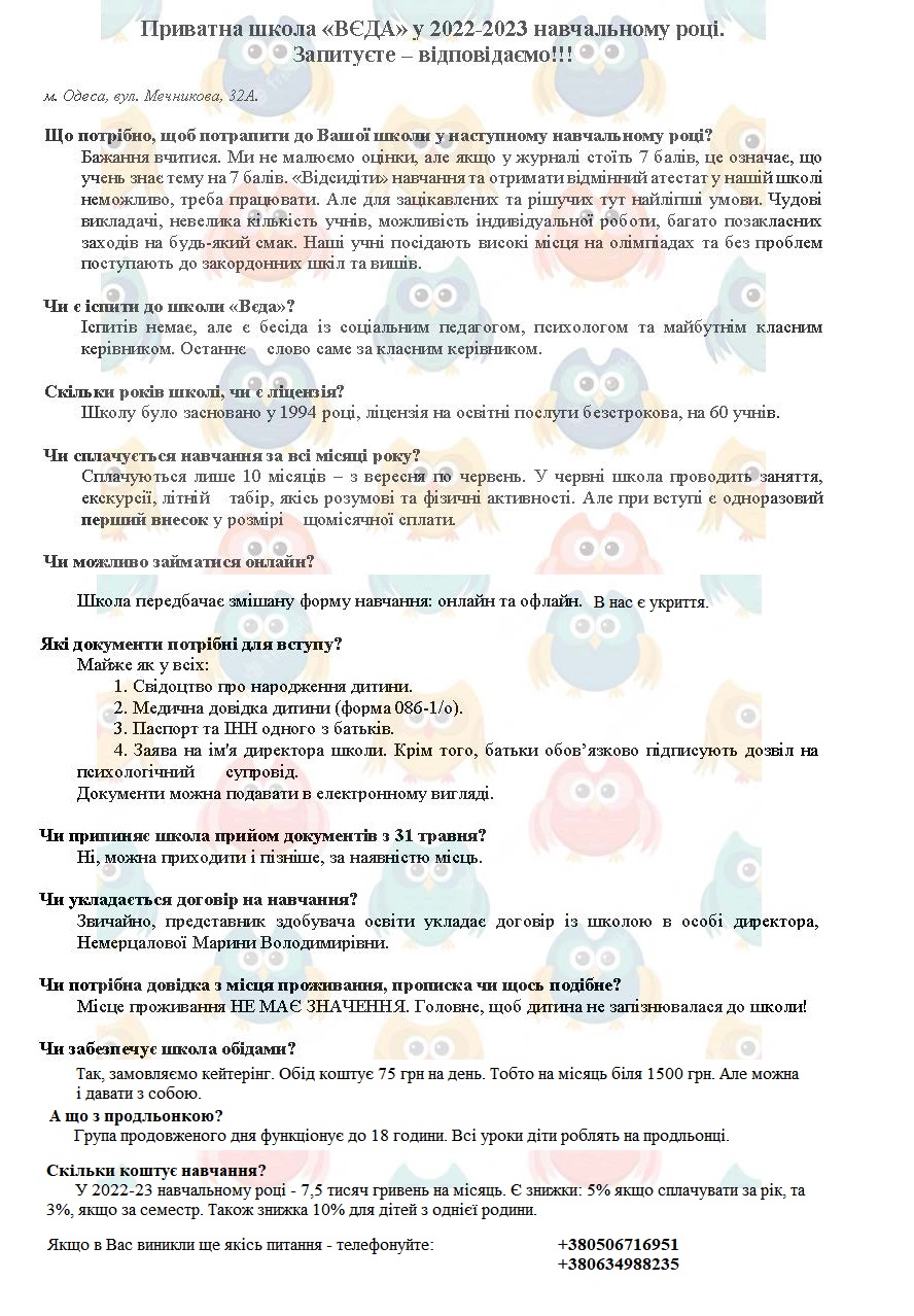 До приватного закладу «Одеський ліцей «ВЄДА»: