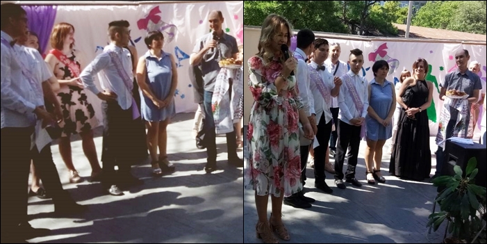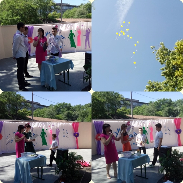 Школа провожала своих учеников во взрослую, самостоятельную жизнь: на сцене звучали тёплые напутственные слова учителей, стихи, песни, кружили в танце пары, исполнялись энергичные флешмобы. Поздравить своих детей и выразить благодарность школе поспешили и родители выпускников. Они разделили со своими детьми традиционный каравай и, наконец, в небо под звуки песни взлетело облако красочных воздушных шаров.